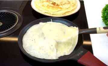 Берем сковороду, мне удобно жарить на блиннице, у меня диаметром 24 см. Смазываем маслом, наливаем тесто, равномерно