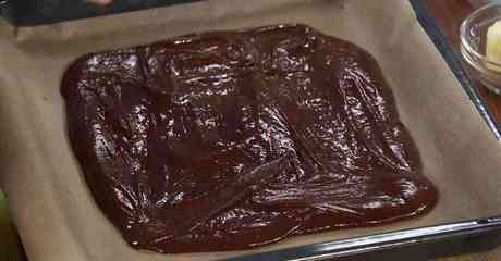 Выкладываем тесто на противень, разравниваем. Отправляем в духовку, разогретую до 180° C, на 25 минут. Срезаем края у готового брауни.