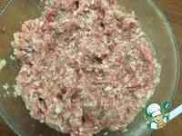 В фарш режем лук, солим, перчим, вливаем 150 мл ледяной воды ( у меня фарш густой, поэтому ушло 150 мл, а куриный или индюшиный чуть жиже бывает,