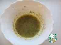 В маленькой миске взбить вместе оставшиеся 4 столовые ложки растопленного сливочного масла с чесночным порошком, базиликом и петрушкой.