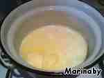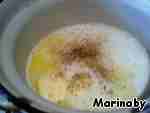 Заранее включить духовку на 220° C. Нагреть в кастрюле молоко, добавить масло, довести до кипения.