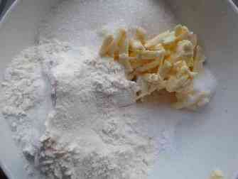 Для теста, точнее, для тестяного «крошева» сливочное масло должно быть холодным, но не из морозилки, а просто из холодильника. Его натираем на крупной тёрке.