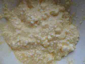 Размешиваем начинку, не очень долго. Творог не должен стать однородным.