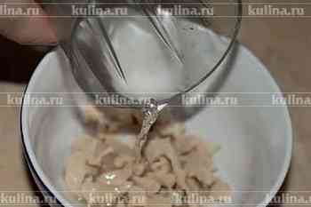 Влить 25 мл теплой воды, перемешать и оставить минут на 15.