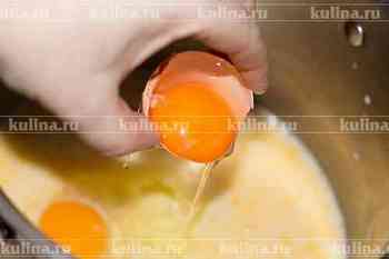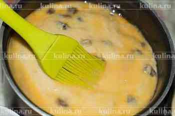 Дать ему подойти на 3/4 высоты формы, смазать яйцом.