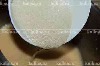 Сухие быстрорастворимые дрожжи привести в активное состояние, смотрите инструкцию. Если вы используете живые дрожжи, раскрошить дрожжи в емкость,