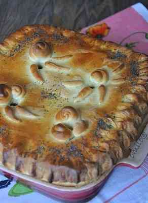 Готовую кулебяку накрыть полотенцем. Оставить на 10 минут.