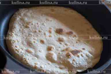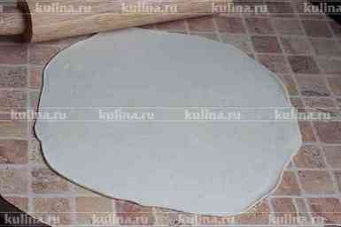 Каждую часть раскатать в тонкую лепешку по размеру сковороды.