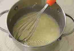 130 г сахара, 20 г крахмала и всю цедру. Размешиваем венчиком до однородности. Ставим на огонь – греем до закипания, варим минут 5, пока не загустеет.