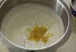 масса должна стать светлой, пышной и густой. Добавляем 1 столовую ложку лимонной цедры, аккуратно перемешиваем лопаткой.