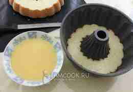 Разрезаем на 3-4 коржа. Собираем в той же форме, где пекли. Корж – слой лимонного курда – снова корж.