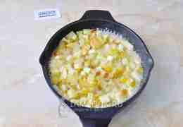 они станут мягкими и чуть карамелизуются. Главное – не доводить до пюре, кусочки должны держать форму. Даём начинке остыть.