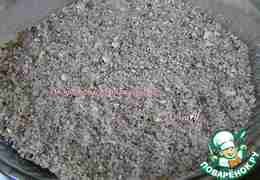 Форму для выпечки (у меня диаметром 24 см) смажьте маслом, присыпьте мукой, равномерно распределите измельченные орехи (у меня фундук).