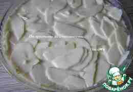 Яблоки очистите и очень тонко нарежьте, сразу добавляя в тесто, чтобы не потемнели.