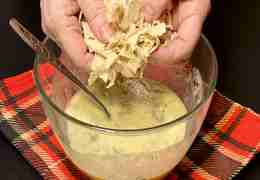 в яичную смесь. Эти кусочки впитают заливку и помогут пирогу лучше схватиться, не развалиться при нарезке.