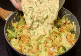 Брокколи и цветную капусту бланширую в кипящей подсоленной воде буквально 2–3 минуты. Соцветия должны стать мягче, но сохранить форму и яркий цвет.
