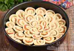 Заготовки из теста и сгущенки размещаем по кругу в форме