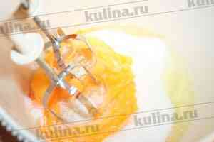 Соединить яйца с сахаром и взбить все в пышную однородную массу.