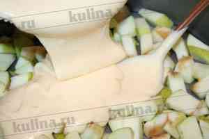 Залить ароматным тестом яблоки.