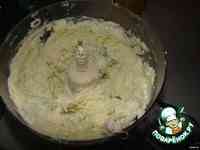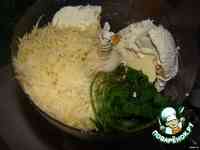 Смешиваем творог, сыр, яйца, зелень (Я взяла петрушку и все вместе измельчила в комбайне).