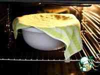 Накрываем миску полотенцем и ставим в теплое место на 1-1,5 часа. Совет: можно предварительно нагреть духовку до минимальной температуры (у