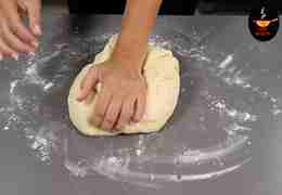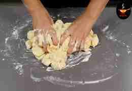Когда тесто перестало быть жидким, собралось в комок – переходим для удобства вымешивания на рабочую поверхность.