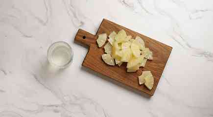 Ананасы откиньте на сито, чтобы стекла лишняя жидкость. Сироп сохраните – он