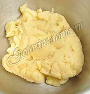 отстающий от стенок и дна кастрюли. Снять кастрюлю с огня и переложить тесто в чистую миску (чтобы тесто быстрее остывало).