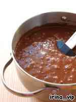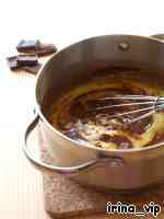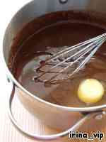 Снять кастрюлю с огня, добавить к массе шоколад, поломанный на кусочки, и кусочками же порезанное сливочное масло.