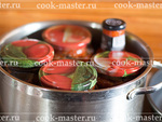 Прикрываем банки крышками, ставим в кастрюлю, заливаем водой "по плечики" и стерилизуем 20 минут после закипания.