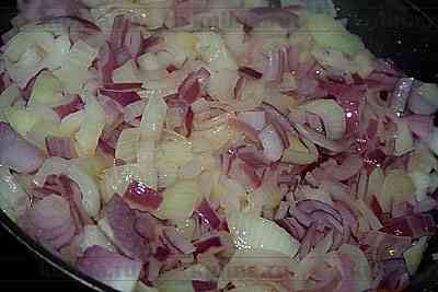Репчатый лук очистить, нарезать и обжарить в масле.