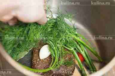 Положить 1/2 пучка укропа