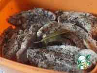 По прошествии двух суток, вылавливаем из кастрюли то сало, которое у нас варилось, вместе с лавровым листом. Выкладываем на бумажные полотенца,