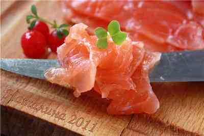 Филе выложить в небольшую, но глубокую керамическую емкость кожей вниз, залить коньячной смесью, дать постоять в таком виде 5-10 минут, затем филе перевернуть,