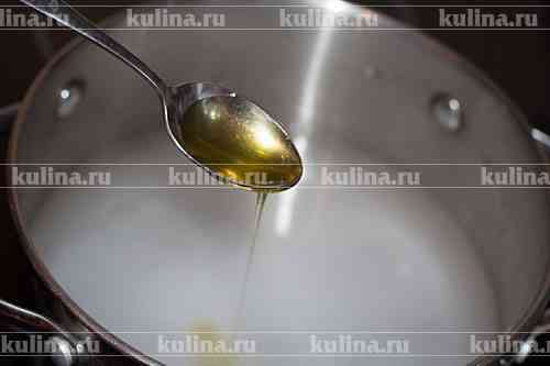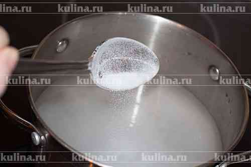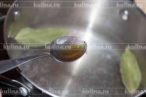 Приготовить маринад. В кастрюлю налить воду, всыпать соль..