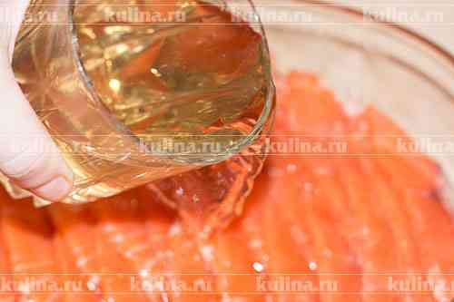 Оставить рыбу на час при комнатной температуре. Затем воду слить. Рыбу сбрызнуть оливковым маслом и убрать в холодильник на ночь.