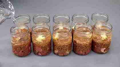 Заливаю содержимое баночек водой (по плечики!). До крышки должно оставаться 1,5-2 см!