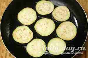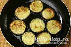 Обжариваем по 2-3 минуты с каждой стороны до образования коричневато-золотистой корочки. Если баклажаны набрали много масла, выкладываем
