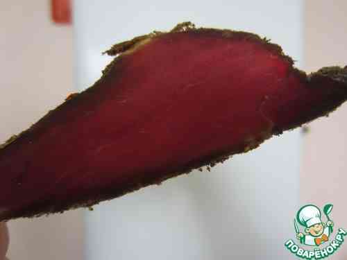 пажитником (а именно он, по мнению гурманов, и создаёт тот самый вкус и аромат бастурмы), так как домашние жалуются потом на непрогрызаемый и непрорезаемый