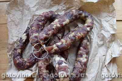 самой твердой. Убрать сыровяленую колбасу в холодильник. Хранится она очень долго, только со временем все больше и больше высыхает. Приятного аппетита!