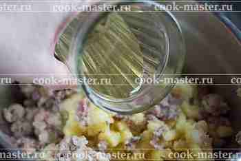 Селедку разделать на филе без костей, пропустить через мясорубку.