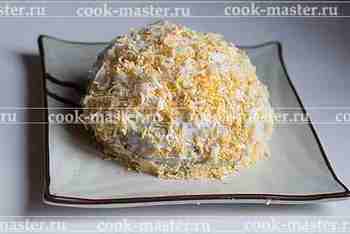 Яйца натереть и посыпать ими весь форшмак. Убрать форшмак в холодильник минимум