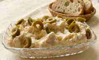 С творожным сыром и оливками