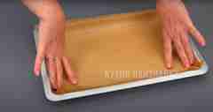 Делаю вкладыш из пергамента (если не уверены в качестве своей бумаги, лучше смазать её маслом). Размер моего противня 34 х 22 см.
