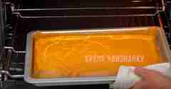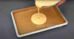 Выливаю подготовленное тесто и ставлю противень в разогретую до 180° C духовку на 10 минут.