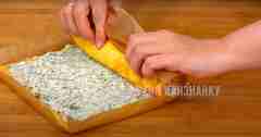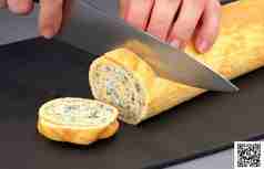 Перед подачей нарезаю рулет на кусочки толщиной примерно 8-10 мм.Источник: Кухня наизнанку