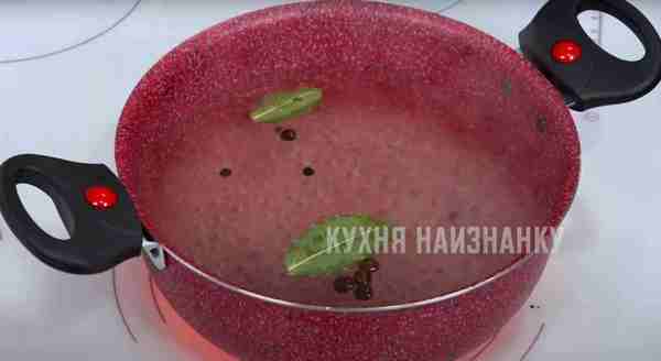 лавровый лист и несколько горошин черного и душистого перца. Довожу до кипения.