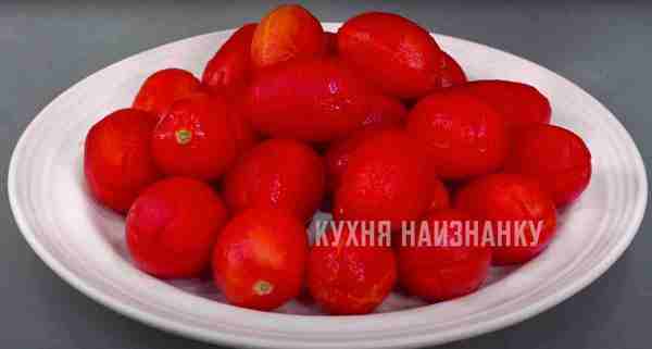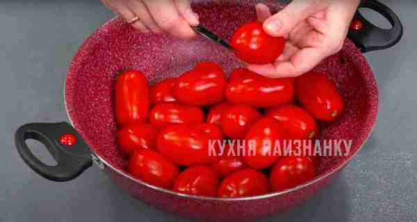 С помидоров обязательно нужно снять кожицу. Для этого надрезаю каждый помидор сверху (крест-накрест).