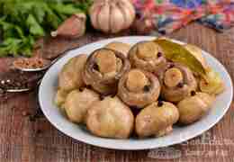 Маринованные шампиньоны получаются плотными, очень вкусными и ароматными. Подаем их на стол в качестве закуски или используем для приготовления салатов и интересных закусок.