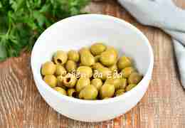 Оливки без жидкости выкладываем в не очень глубокую тарелку.